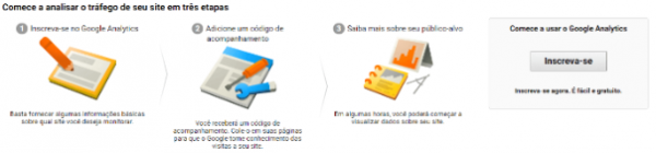 Para fazer a instalação do Google Analytics é muito fácil. Depois de fazer o cadastro no site o próximo passo é selecionar “inscrever-se”.