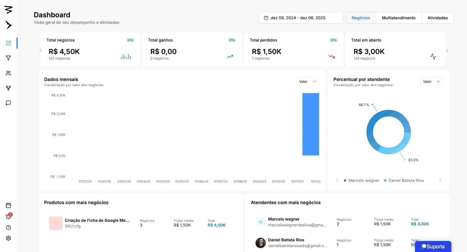 Um CRM brasileiro com IA, automações avançadas e suporte humano em tempo real.
